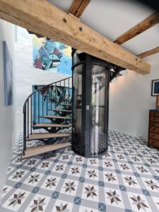 L’ascenseur pneumatique est une structure circulaire autoportante qui est installée directement sur le sol de la maison.